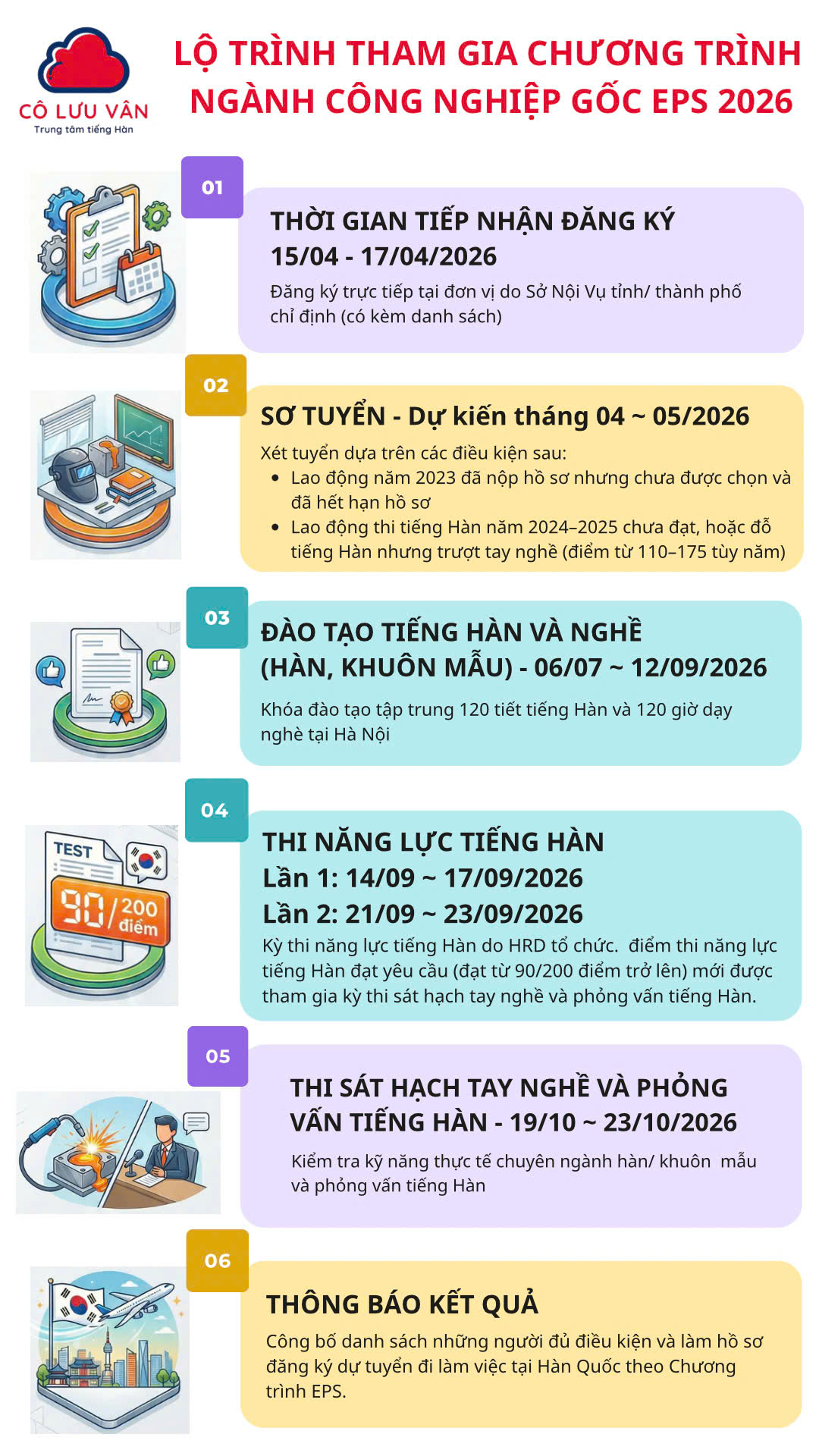Đào tạo tiếng Hàn và đào tạo nghề: 06/07 ~ 12/09/2026
